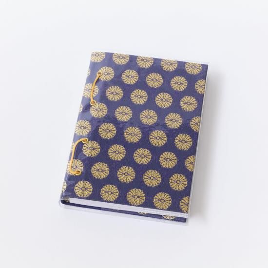 紺地に金色の糸で菊紋の柄を使った金襴表紙の二種類あります。
