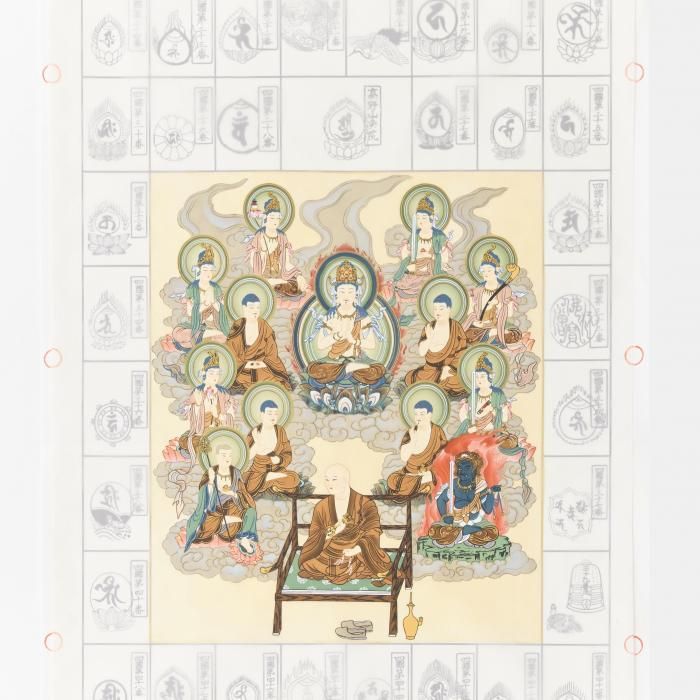 十三佛様の光背部分に上品な緑色を使用しているので、結願しますと、墨と朱印の色との