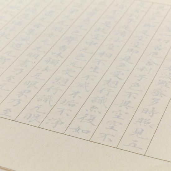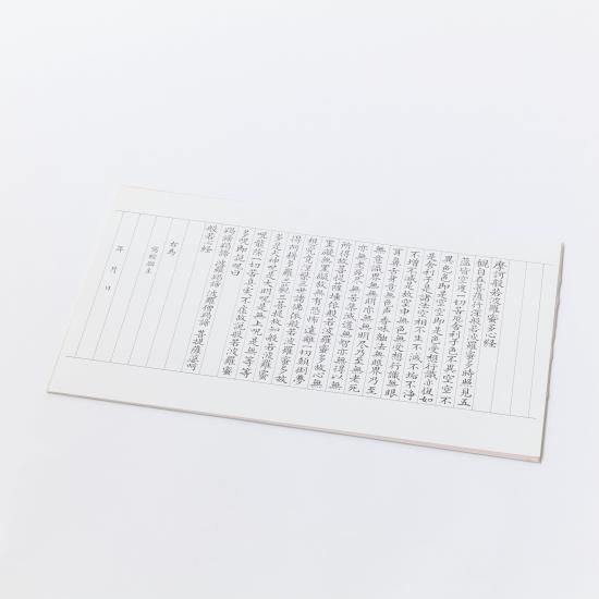 ニジミが少なく滑らかな書き味の写経用紙です。写経作法および誦経(ふりがな付き) お手本、なぞり書き用紙が付いているので簡単に写経が始められます。