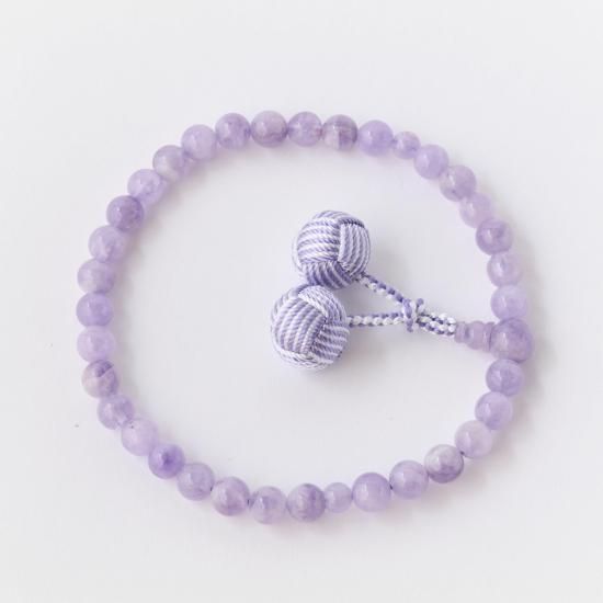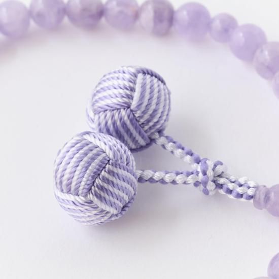 【女性用片手念珠】 藤雲石(ラベンダーアメジスト) 正絹利休梵天