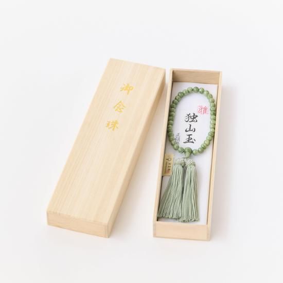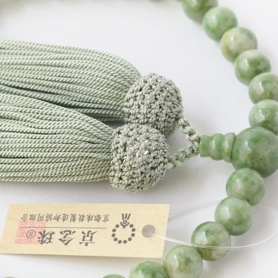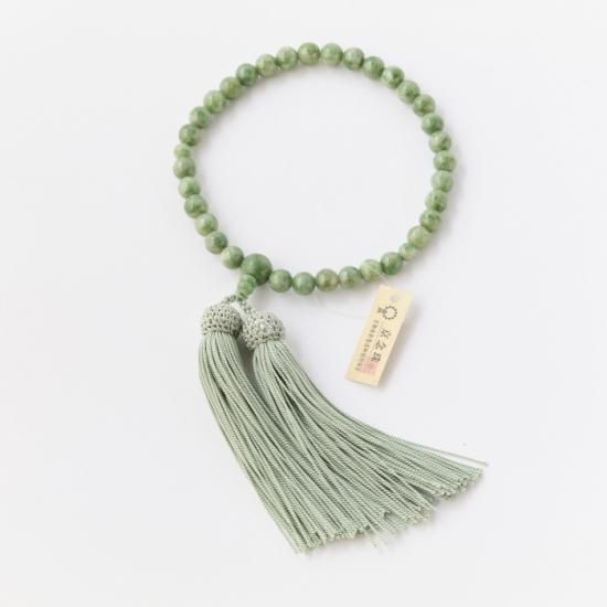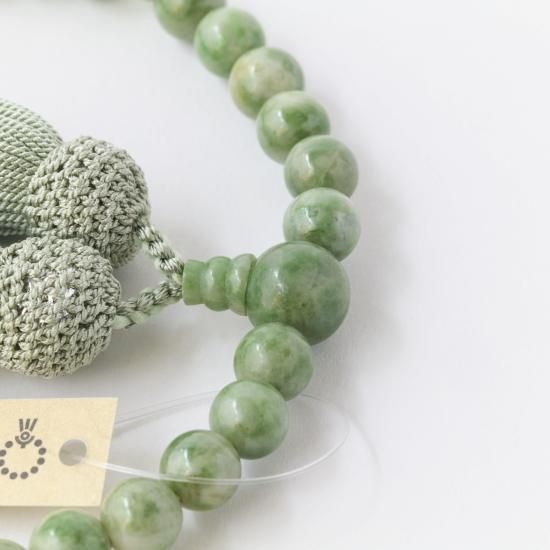 【女性用片手念珠】 独山玉(ソーシュライト)頭付正絹房