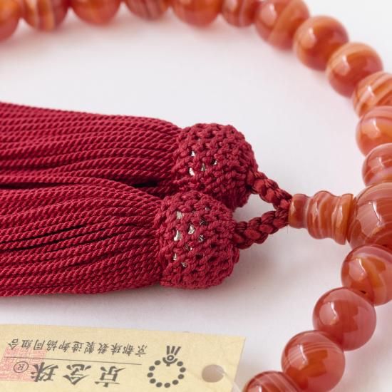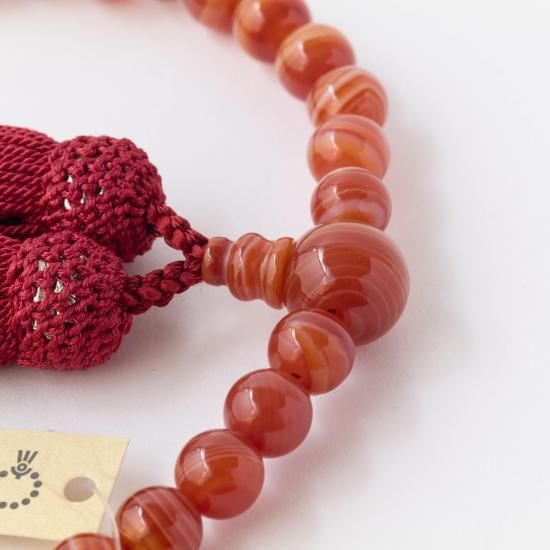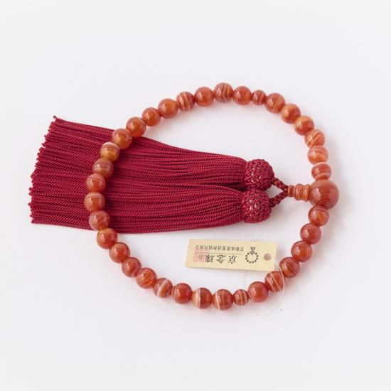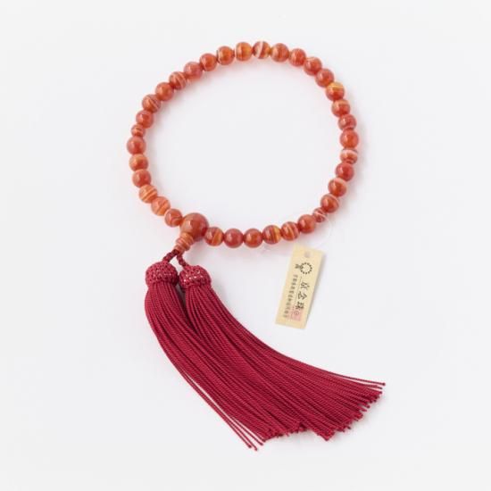 【女性用片手念珠】 赤縞瑪瑙(サードオニキス) 頭付正絹房