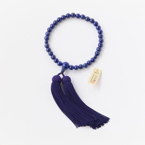 【女性用片手念珠】 瑠璃石(ラピスラズリ)頭付正絹房