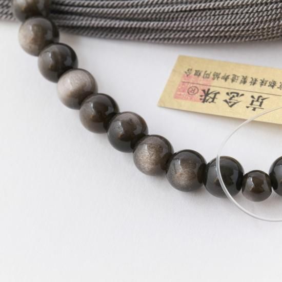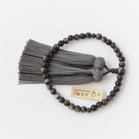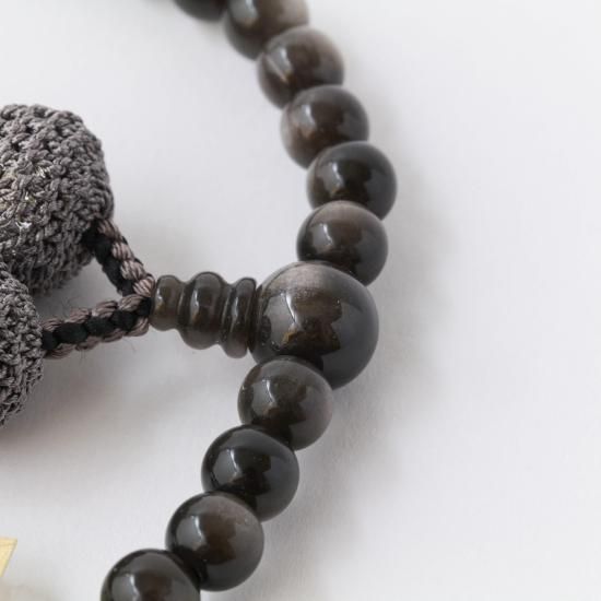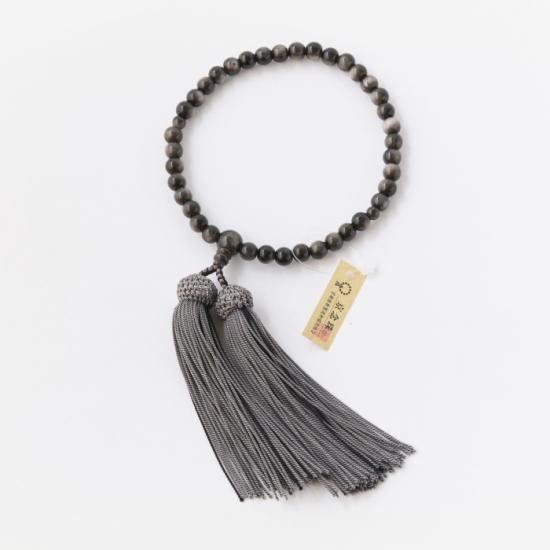 【女性用片手念珠】 銀耀石(シルバーオブシディアン) 頭付正絹房