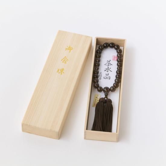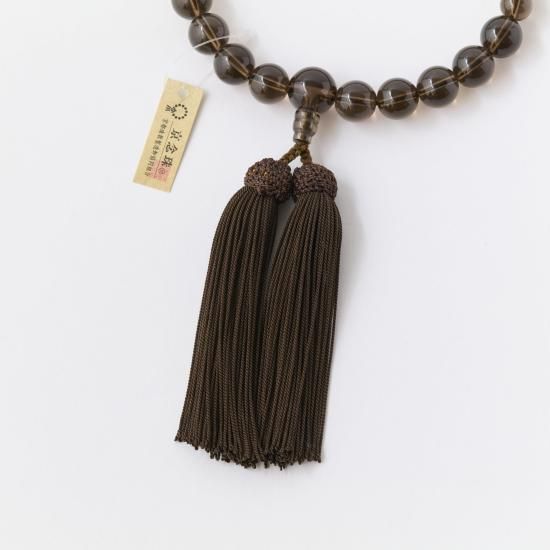 【男性用片手念珠】 茶水晶(スモーキークォーツ) 頭付正絹房