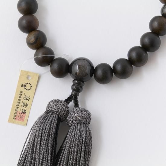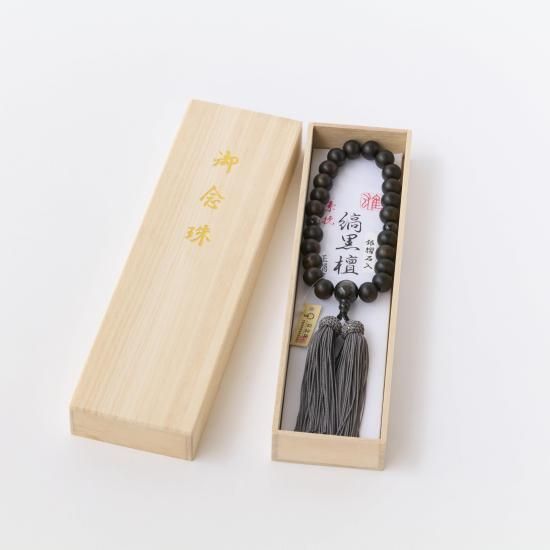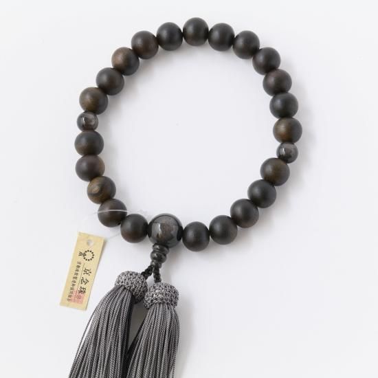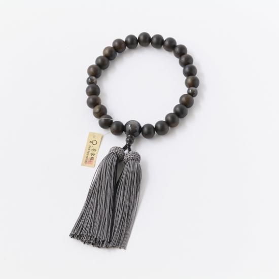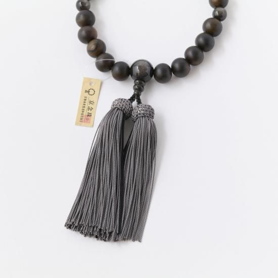 【男性用片手念珠】 縞黒檀 銀耀石仕立 頭付正絹房