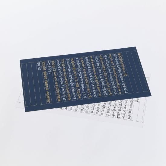 【内訳】現代意訳…山田無文老師  紺地金、銀刷り写経…1枚  薄墨なぞり書用紙…7枚