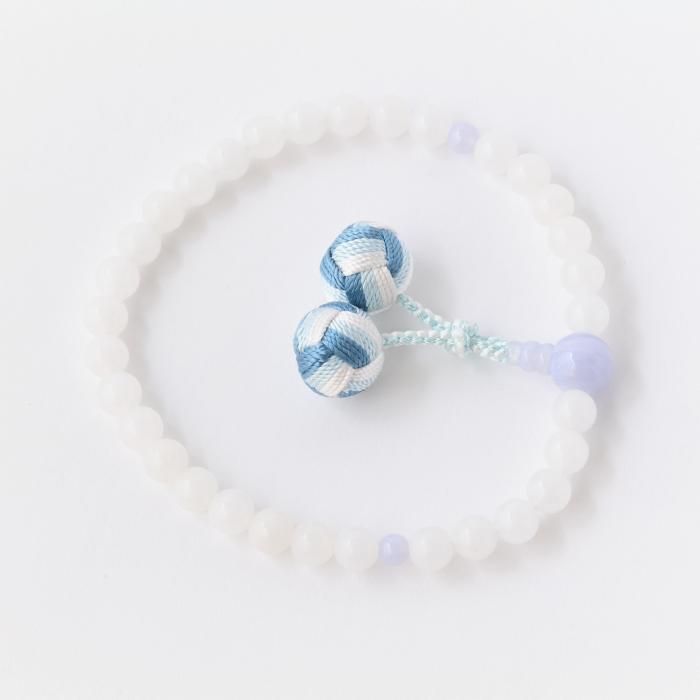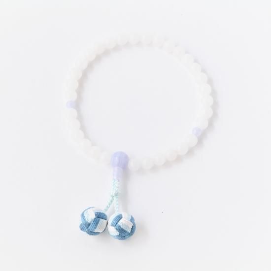 【女性用片手念珠】 ホワイトオニックス(ホワイトオニキス)正絹利休梵天