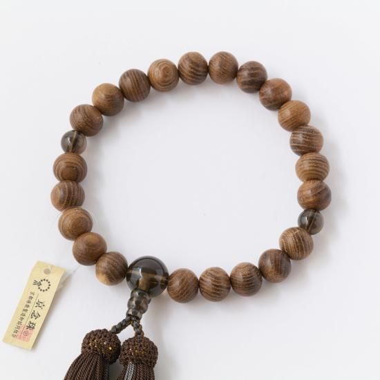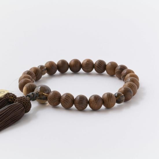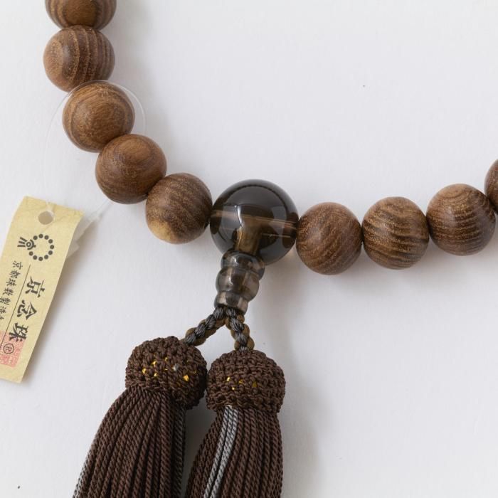 【男性用片手念珠】 槐(エンジュ)天然石仕立 茶水晶仕立て 頭付正絹房
