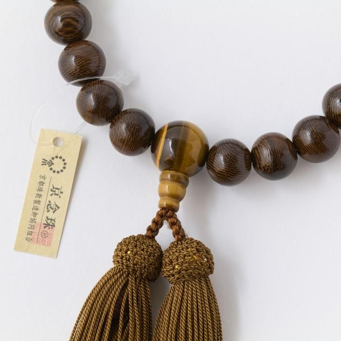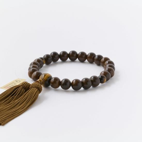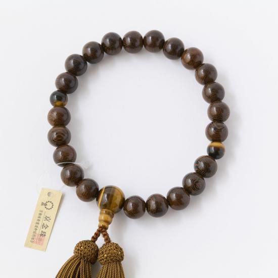 【男性用片手念珠】 鉄刀木 虎眼仕立 頭付正絹房
