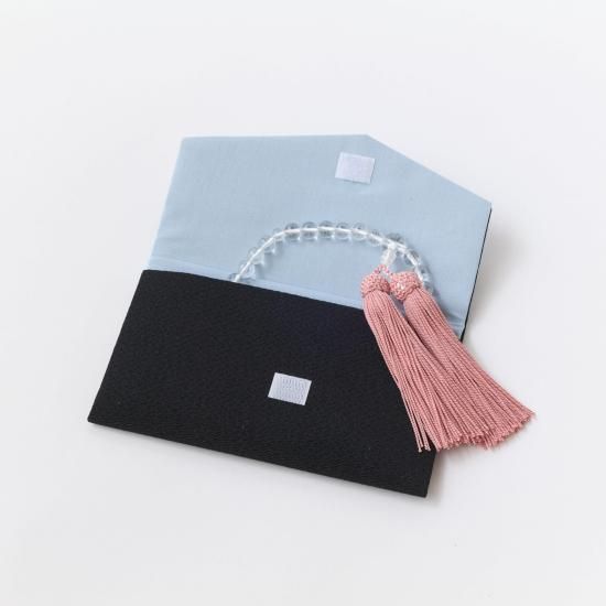 二重ちりめん【黒】無地念珠入れ マジックテープ付き