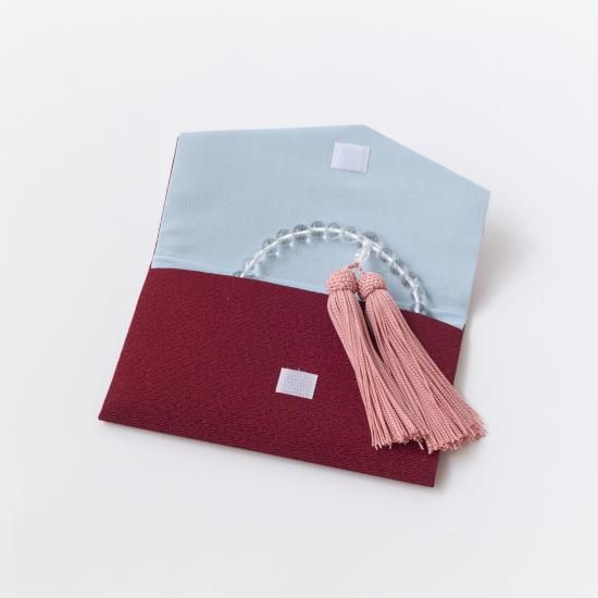 二重ちりめん【臙脂】無地念珠入れ マジックテープ付き