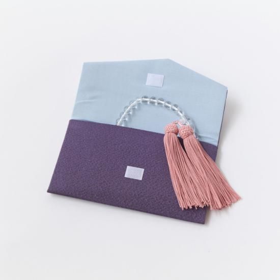 二重ちりめん【紫】無地念珠入れ マジックテープ付き