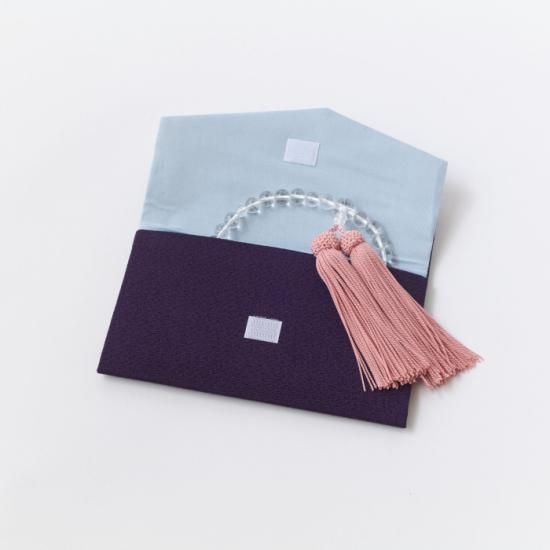 二重ちりめん【濃紫】無地念珠入れ マジックテープ付き
