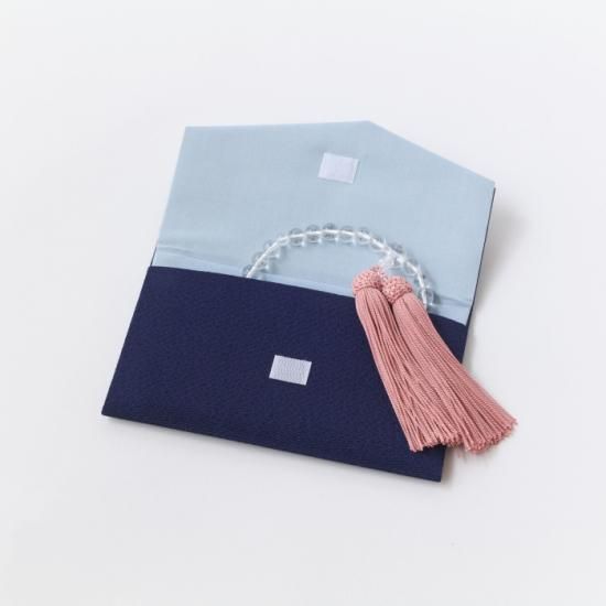 二重ちりめん【紺】無地念珠入れ マジックテープ付き