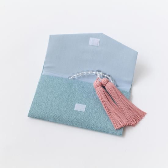 二重ちりめん【青】無地念珠入れ マジックテープ付き