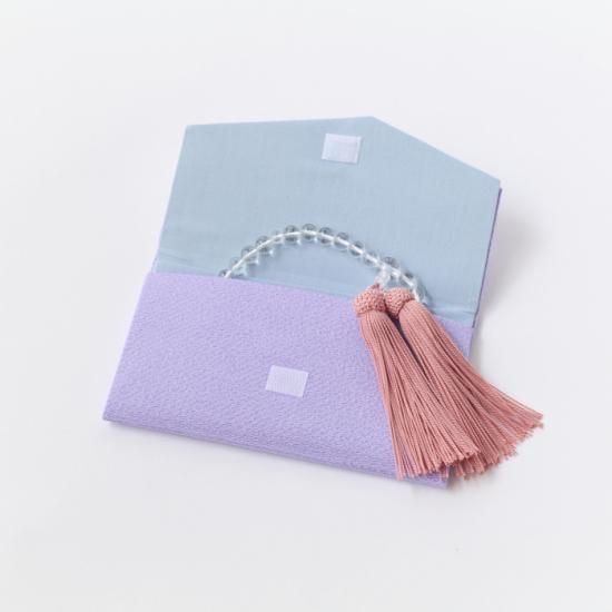 二重ちりめん【藤】無地念珠入れ マジックテープ付き