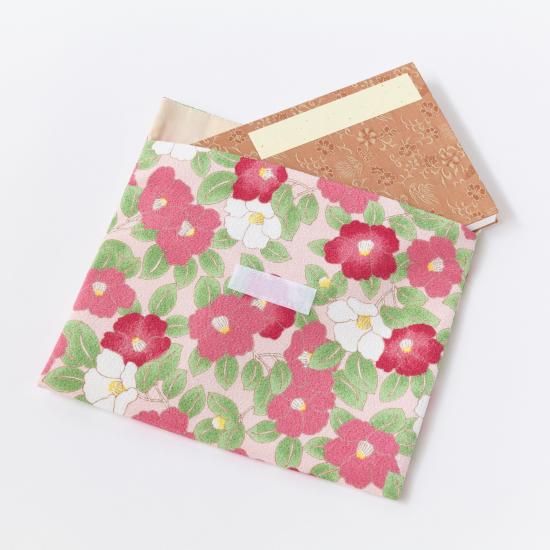ちりめん納経帳入れ マジックテープ付き 「椿」