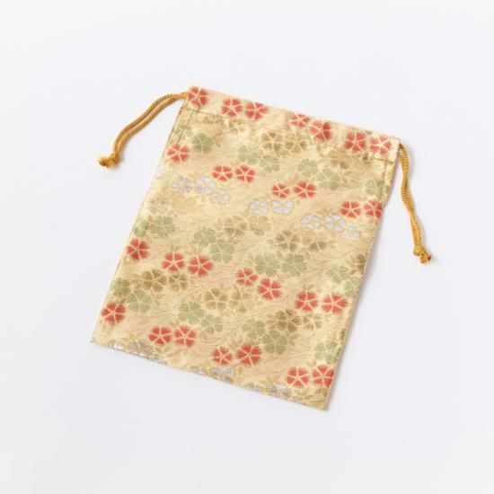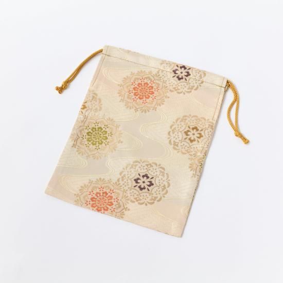 金襴巾着 クリーム色系緞子