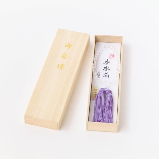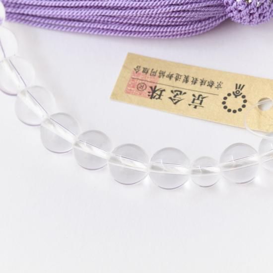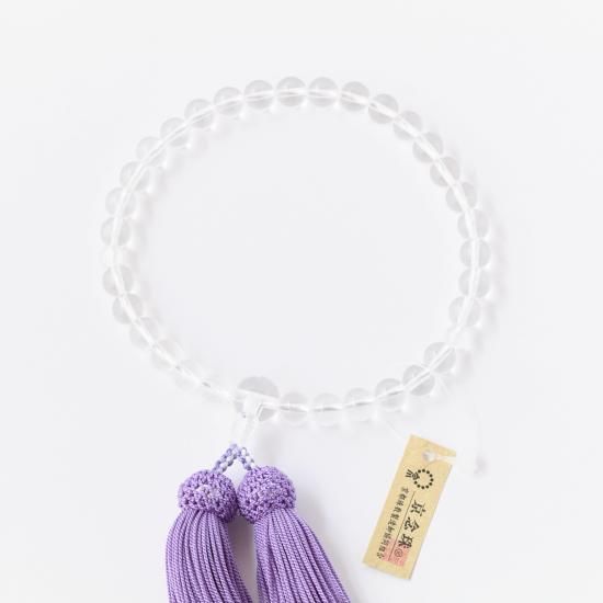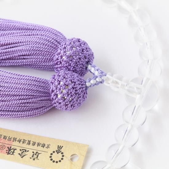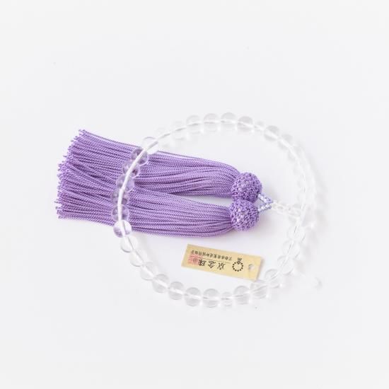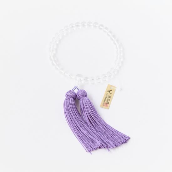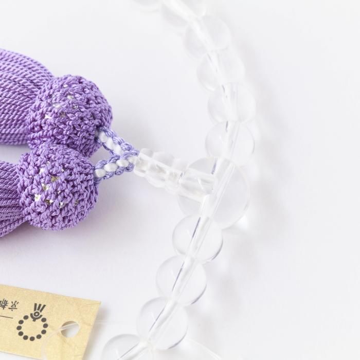 【女性用片手念珠】 本水晶 頭付正絹房・藤