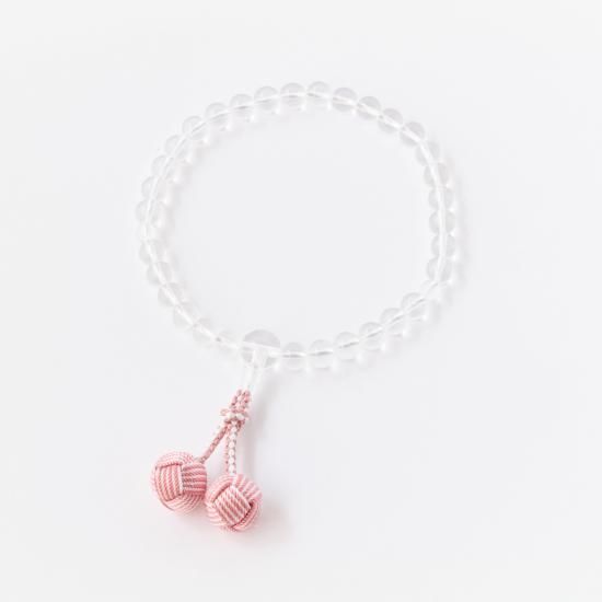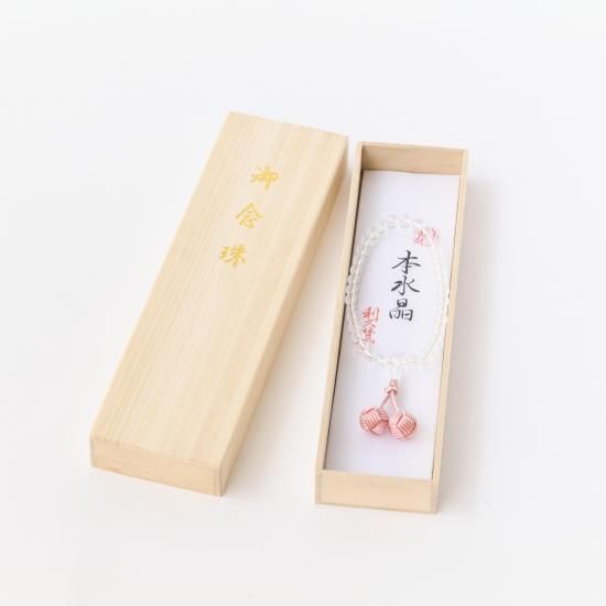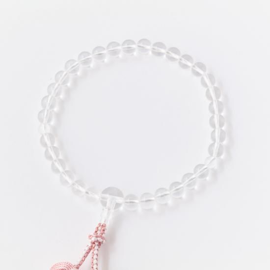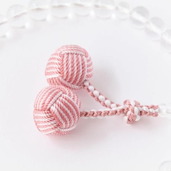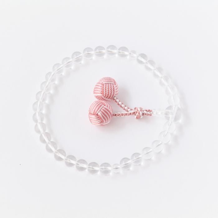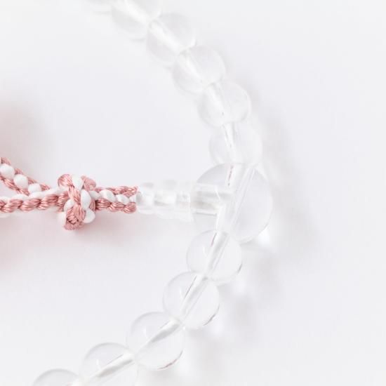 【女性用片手念珠】 本水晶 正絹利休梵天・二色桜