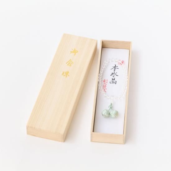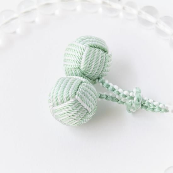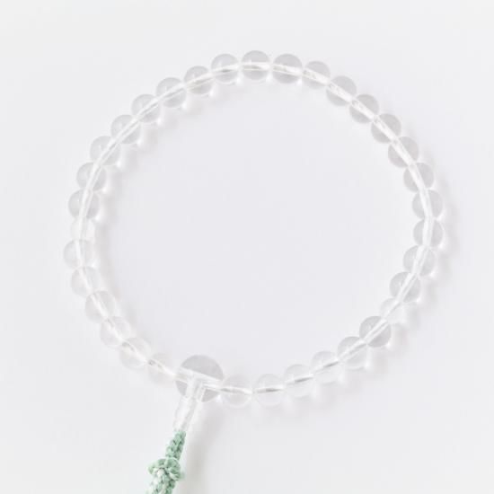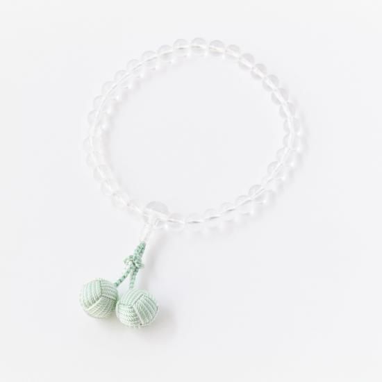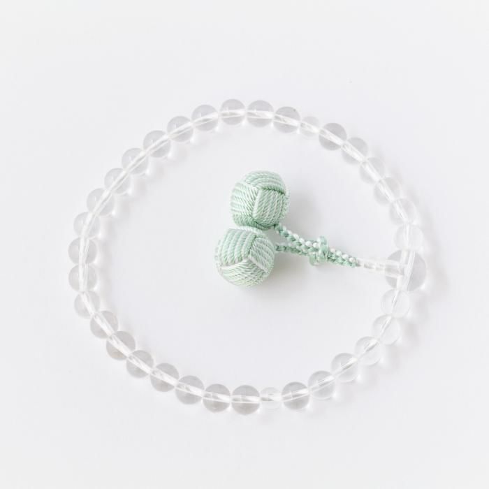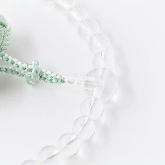 【女性用片手念珠】 本水晶 正絹利休梵天・二色緑