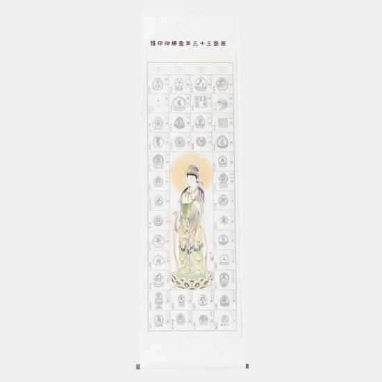 観音様が大きく描かれておりますので、表装すると立派に仕上がります。