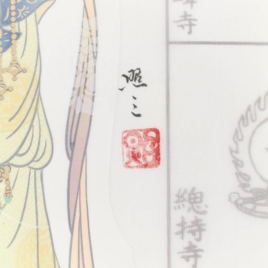 穏やかな中間色で彩られた観音様で特にお顔が美しい納経軸です。