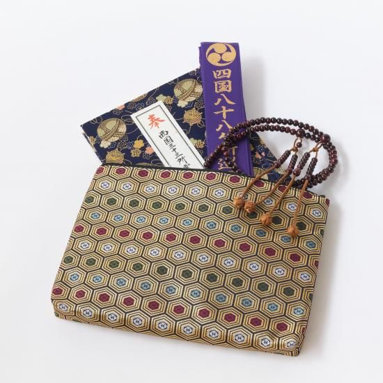 納経帳が収まる大きさですので、巡拝に便利です。巡拝以外でも経本・念珠を入れて活用できます。