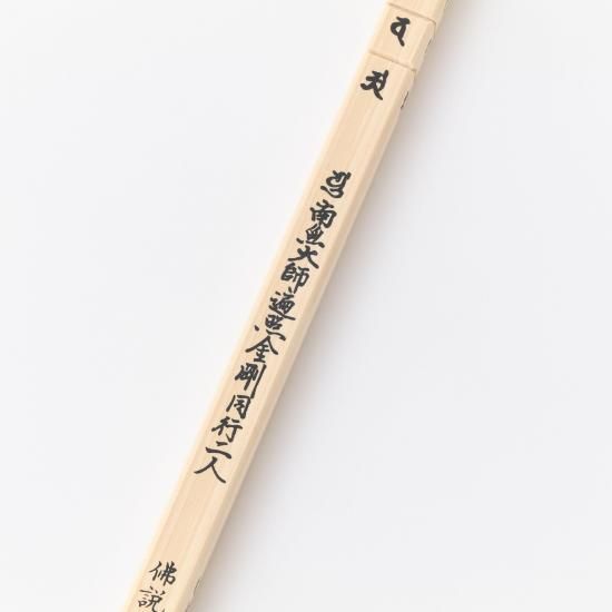 有難い般若心経(はんにゃしんぎょう)が 書かれた金剛杖(こんごうづえ)です。 持ち易いように持ち手から杖先まできちんと角を面取りしております。梵字につづいて「南無大師遍照金剛」「同行二人」と文字が入り、さらに般若心経が杖全体に印刷されています。